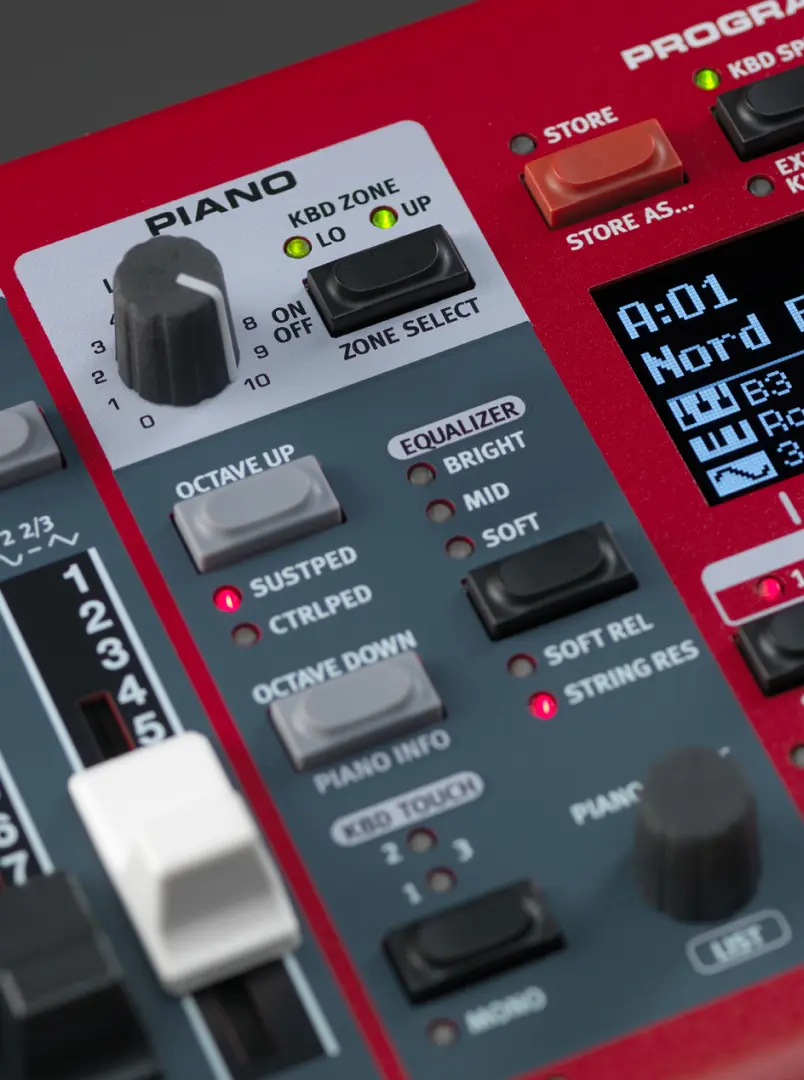The Piano section has a wide selection of acoustic, electric and digital pianos from the exclusive Nord Piano Library, extended voice polyphony and creative new Piano Filters.