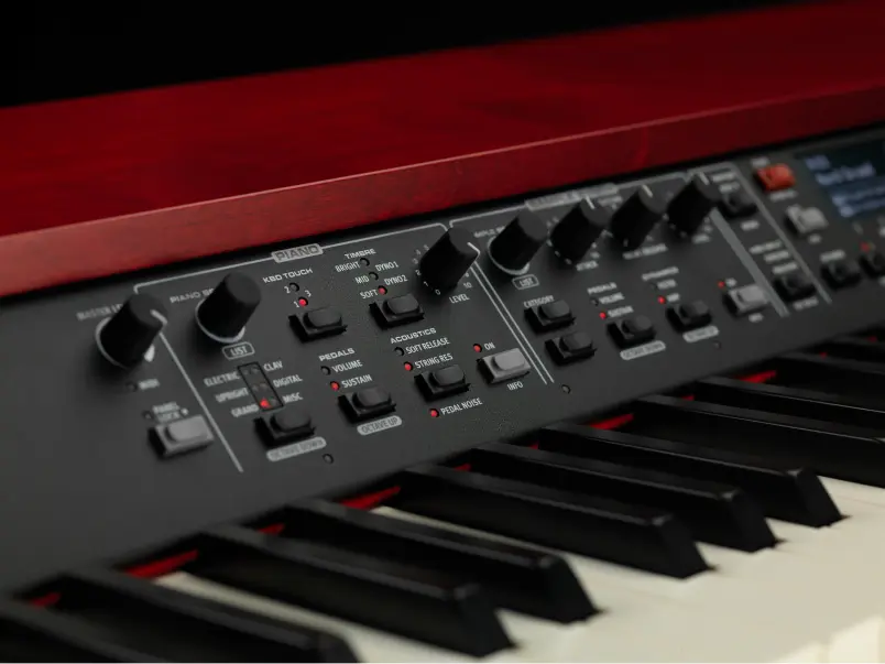 Providing an additional level of sonic control, the Piano Section features dedicated piano filters for Acoustic and Electric pianos accentuating softness, mid or brilliance. The EP filters also include unique Dyno filters based on the legendary preamp delivering the characteristic punchy, bell-like sound that was an essential part of the classic West Coast sound during the 70s and 80s. Read more about the dedicated EP filters here.