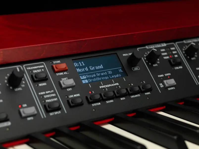 The Nord Grand has dedicated knobs and buttons for all essential functions required in a live performance situation. Creating Layers and Splits, adding effects or transposing the instrument can be accomplished on the fly.