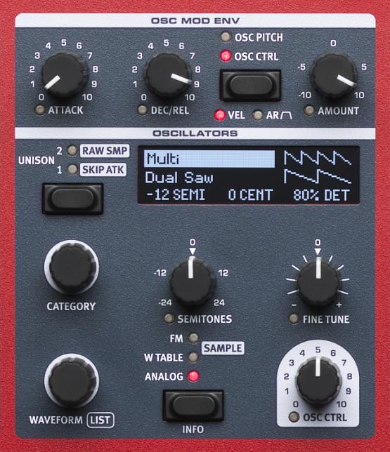 - Multi: 2 or more waveforms combined where the Osc Control will adjust amount of detune and spread